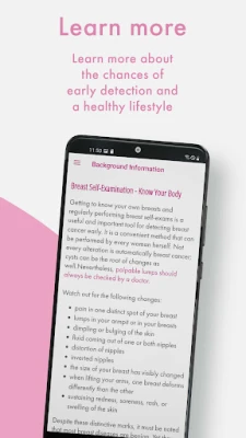 - alerts you when you are within the time frame to conduct a breast self-exam, guide with pictures