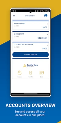 With the Capitol View Mobile Banking App, you can safely and securely access your accounts anytime, anywhere. Our mobile app is FREE and allows you to:
