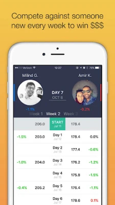 Our weight loss challenge app lets you make a group with your friends and family to lose weight. Create a group, invite others to join, set your buy-in, and then weigh in daily - it’s that simple!