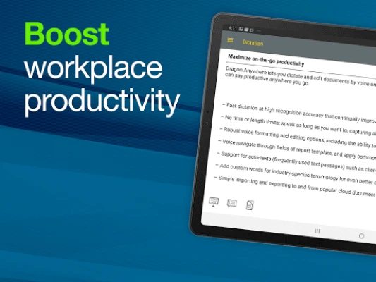 Paperwork doesn’t end when you’re away from your desk. Dragon Anywhere speech to text is the only mobile dictation app that enables continuous dictation of documents, with no length or time limits. This means, you can dictate documents of any length, edit, format, and share them directly from your mobile device to boost productivity anywhere—whether visiting clients, a job site or at your local coffee shop.