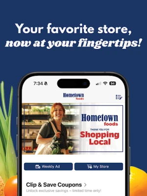 Get more out of your shopping experience with the Hometown Foods mobile app! Easily clip and organize your coupons, view special offers, and access full details for all of our store locations. From delicious recipe ideas to exclusive store ads, everything you need to save time and money is at your fingertips. Download the app today and enjoy a smarter, more convenient shopping journey with Hometown Foods!