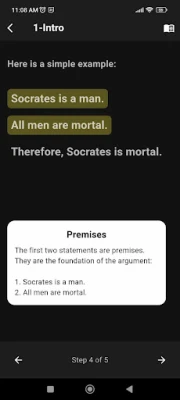 A comprehensive educational tool designed to teach the fundamentals of logical argumentation to university students. The app provides an interactive learning experience through structured lessons and varied assessment types.