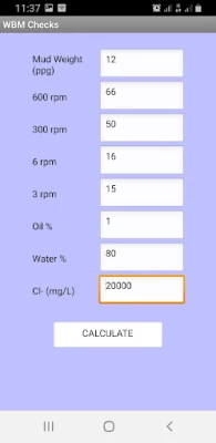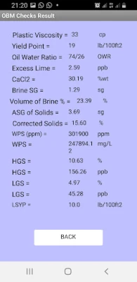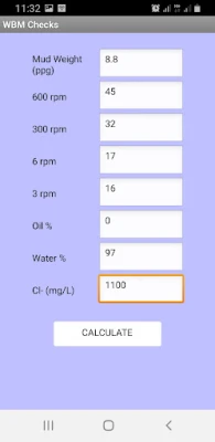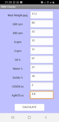 Mud Engineering Calculator is a drilling fluids program for performing mud engineering calculations. This tool is useful to Fluids Supervisors, Fluids Coordinators, Wellsite Mud Engineers, Cement Engineers and Laboratory Technicians. This app among others calculations, performs Mud Checks/ Solids Analysis for OBM/ SBM & WBM, Water Phase Salinity Adjustment, Oil-Water Ratio adjustment, Mud Weight Calculations, Mud Tank Capacity Calculations, Wellbore Volume Calculations and Pump Output Calculations. This program has been tested on different android devices.