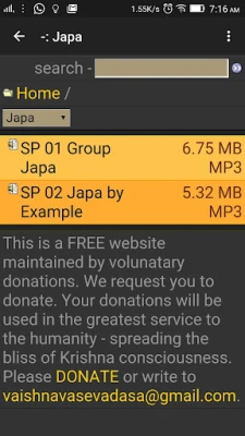 This app has online access of complete collection of more than 6500+ audio files amounting to more than 1100+ hours of recordings of Srila Prabhupada. You can listen to them online or download them completely free of charge.