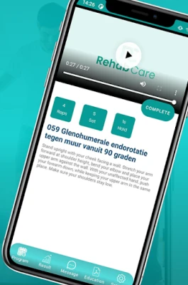- The exercises are shown in "how-to" videos that correctly guide you through the process. Furthermore, you are also facilitated with educational files, introductory videos, videos on different pathologies , outcome measures and results that support your health. - Rehab Care will remind you to do your exercises by the app notifications. - After installing Rehab Care you can use the videos, also when you are offline. - The app views and follows your exercise data directly, so that your practitioner can support you based on the data provided by Rehab Care.