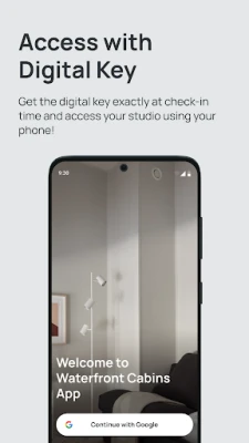 The Waterfront Cabins app lets you get into your booked room through the use of a digital key. It also helps you manage and better enjoy your stay with news and benefits.